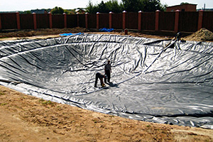 Основание: ложе строящегося водоема должно быть чистым, гладким, сухим и не содержать острых предметов, включений инородных тел, нефтепродуктов, масел и других материалов, которые могут повредить пленку для водоема.
