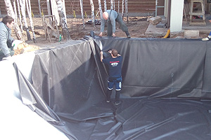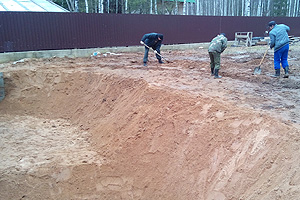 Перед началом строительства пруда необходимо определить на участке контуры будущего пруда, вырыть котлован и хорошо утрамбовать песчаную насыпку дна на 10см. Пленку для пруда лучше всего укладывать в хорошую, теплую погоду. В случае, если глубина пруда будет превышать 0,8м, необходимо сделать склоны уступами, чтобы почва не оседала.
