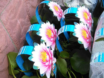 Цветок светло розовый, в середине темнее, 20 см в диаметре, форма цветка чашевидная формы, соцветие выступает над поверхностью воды.